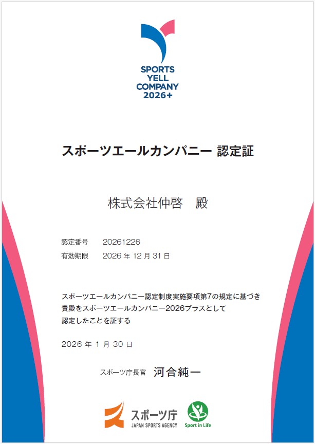 令和8年1月30日、私たちは「スポーツエールカンパニー2026+(プラス)」に認定されました。